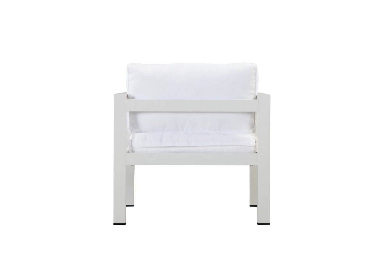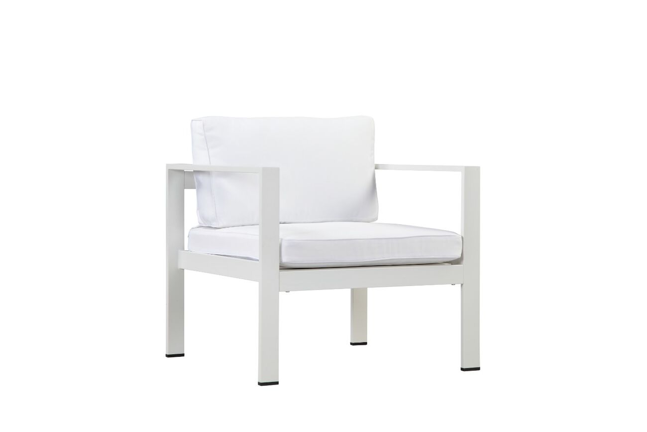 Upscale your patio, terrace, entry halls or entire gardendecor with this elegantly designed furniture. This furniture is designed with the vision of providing comfort in your outdoor settings while raising the trendy style quotient. Make your weekends memorable having barbeque evenings in your outdoor patio with your loved ones. This beautiful patio chair is made especially for your garden settings. It has simple yet very stylish designer look, that is sure to last all years with the aluminium framework. It has been constructed of anodized aluminum frame. The chairs are made from an anodized aluminum frame and water resistant cushions in white. Bring this exceptional collection of patio furniture to your sweet home of dreams. Dimensions of chair: l 29 in. X w 27 in. X h 30 in. Solid and durable framework suitable for outdoor use beautifully accentuates your outdoors immaculate white finish brings peaceful ambience to your outdoors