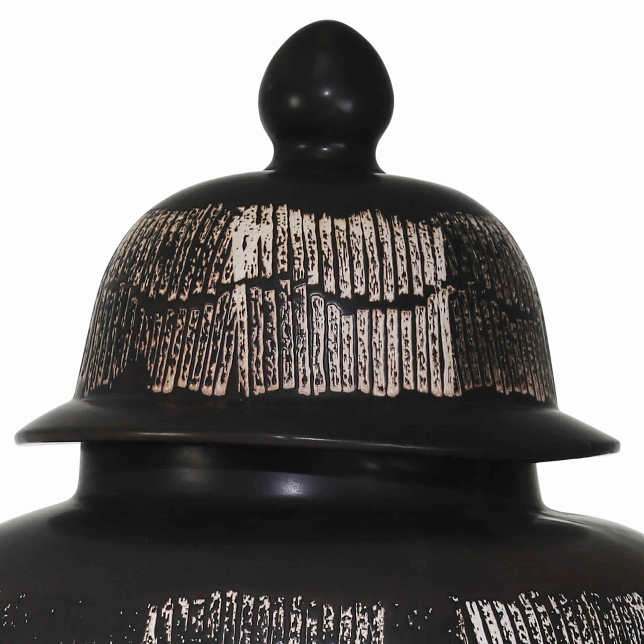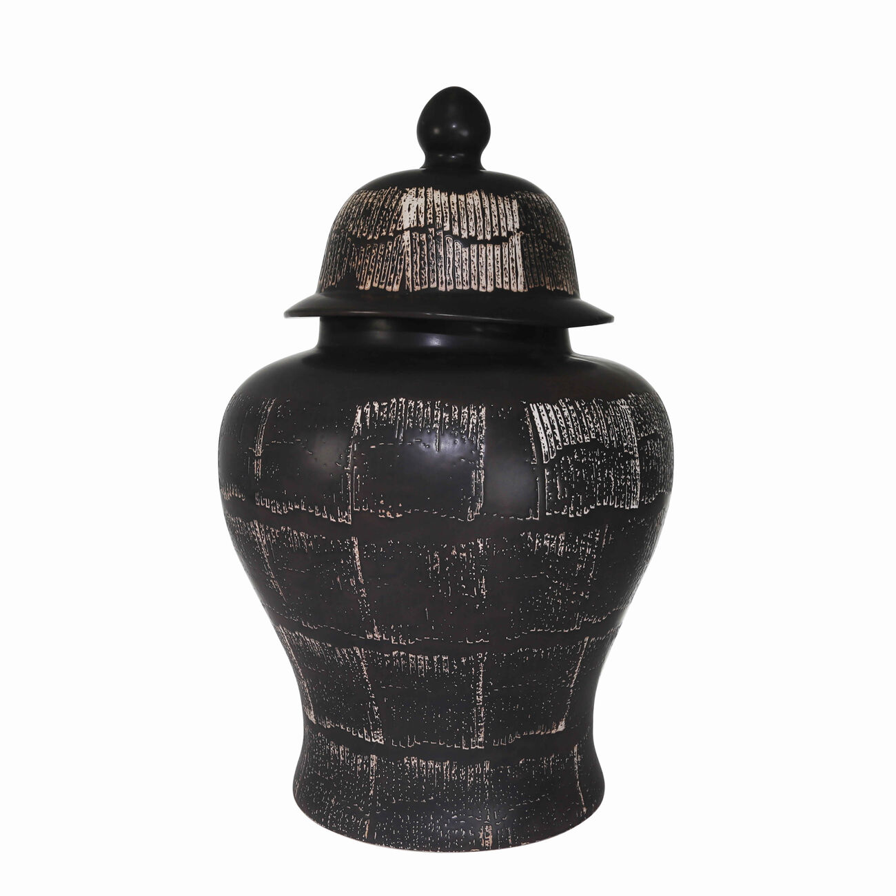 Add an enchanting vibe to your decor setting by bringing in this contemporary style jar which comes in a temple shape and flared bellied body. Constructed from ceramic, it is accented with antique black finish.