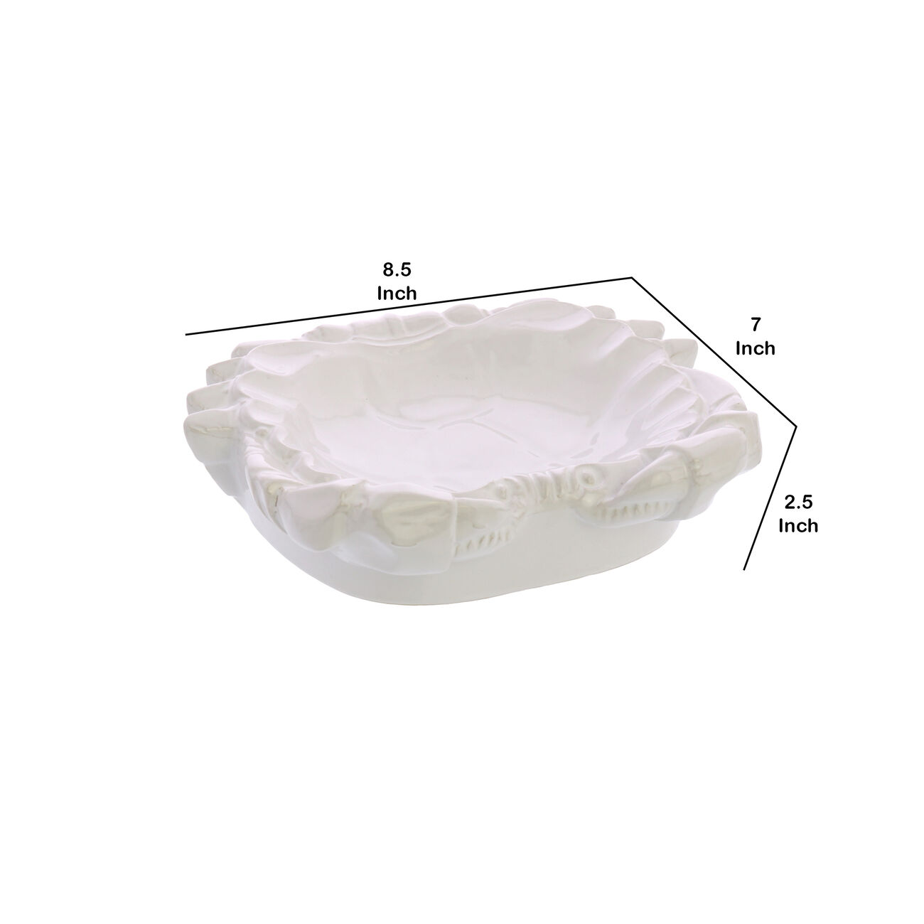 Transitional Styled Ceramic Crab Shaped Large Soap Dish, White