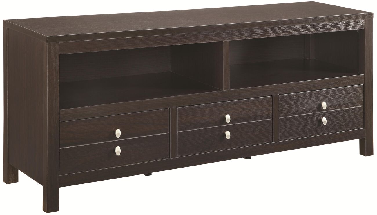 Contemporary and Urbane TV Console With 2 Shelves & 3 Drawers, Cappuccino Brown