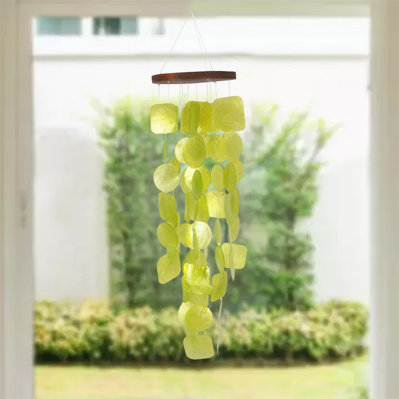 Aesthetically Designed Handmade Wind Chime with Capiz Shell Hangings, Green