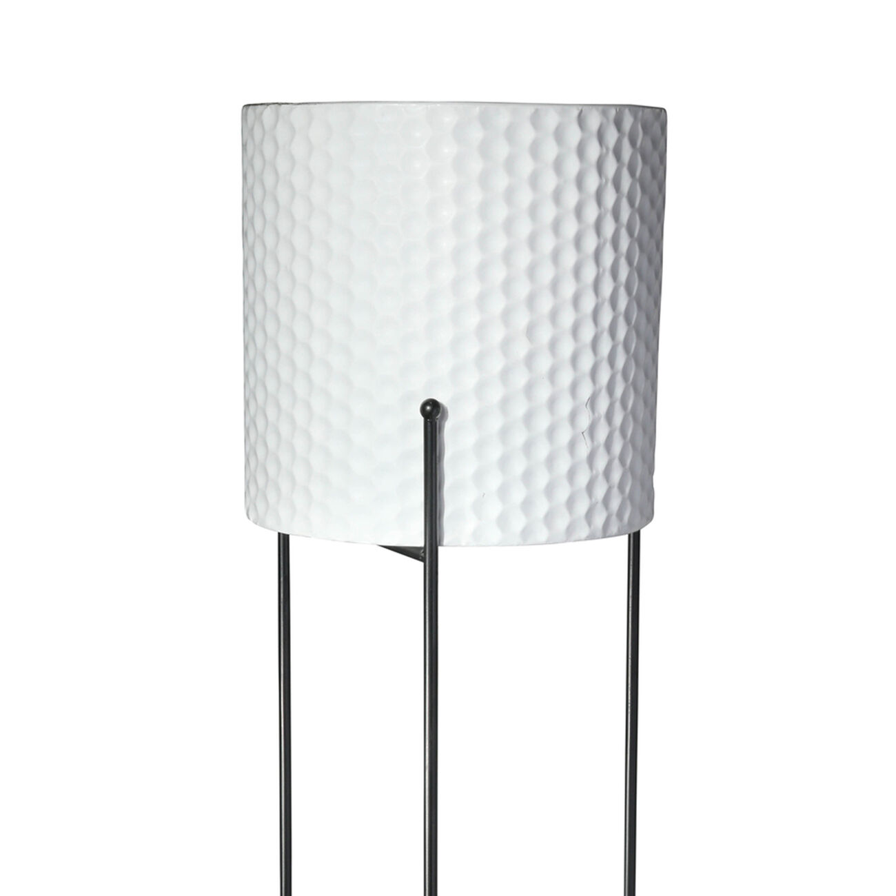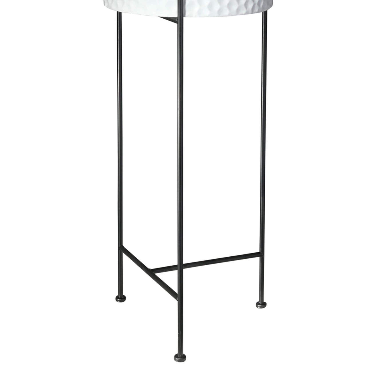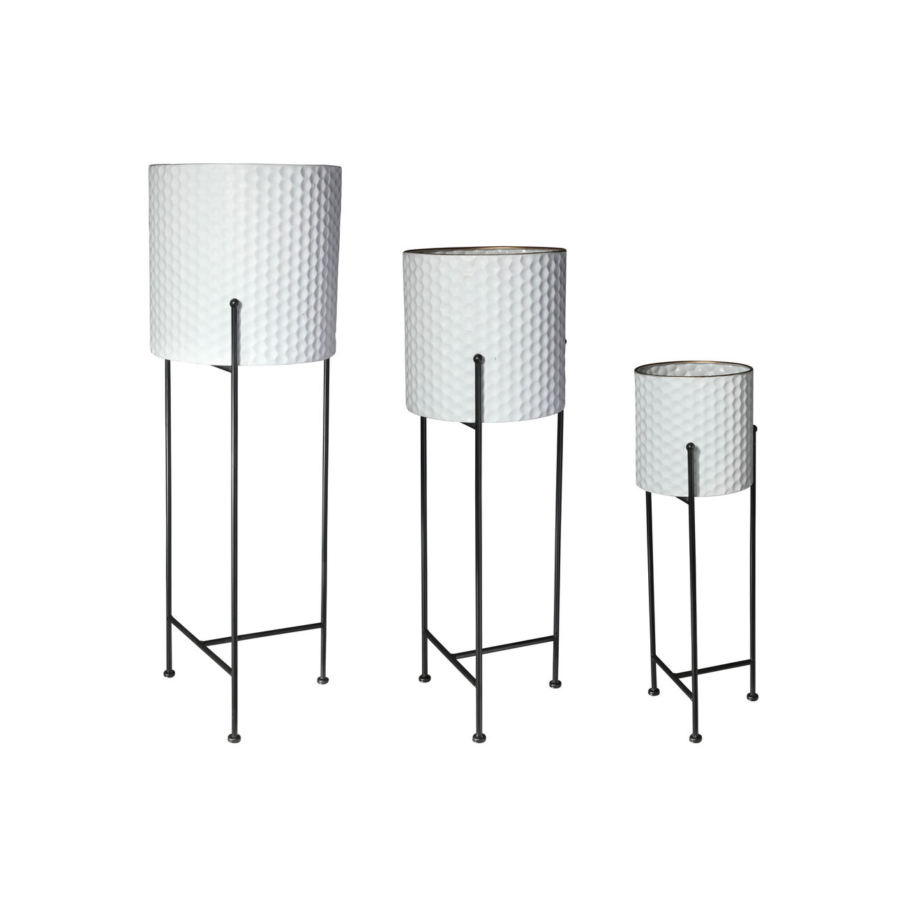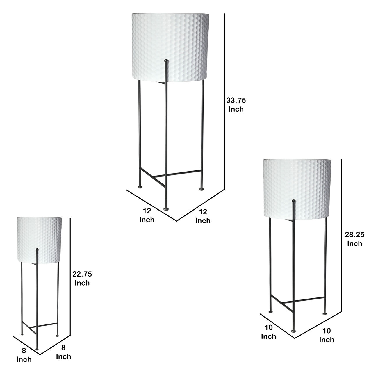 Metal Round Planter with Hammered Design and Tri Stand, Set of 3, White