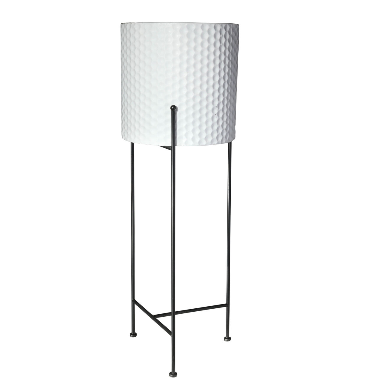Beautify your garden with the inclusion of this contemporary style metal planter featuring sturdy metal construction and round shaped body. Supported on a removable tri stand, it comes with stretcher support at the base and incorporates floor protectors to avoid abrasion. The hammered design on the body completes its look, adding to the visual appeal.