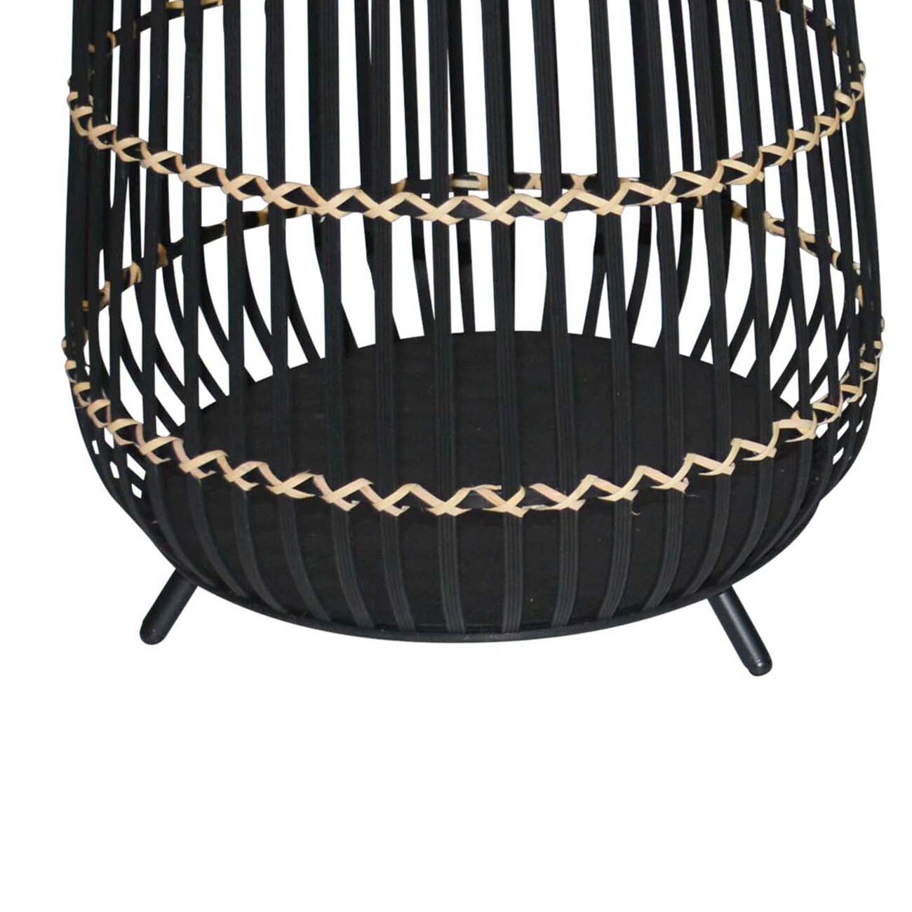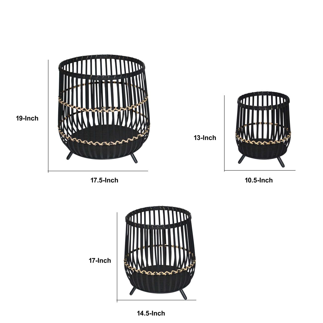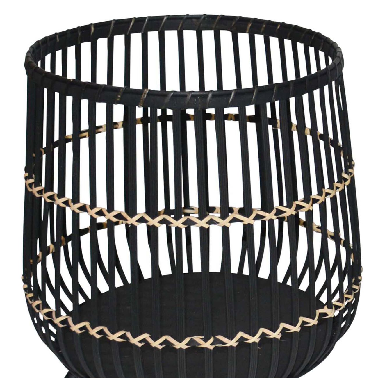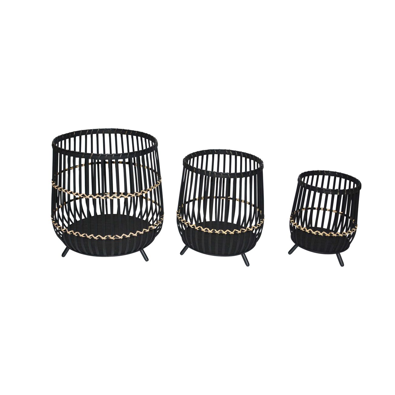 Drum Shaped Open Cage Bamboo Planter with Angled Legs, Set of 3, Black