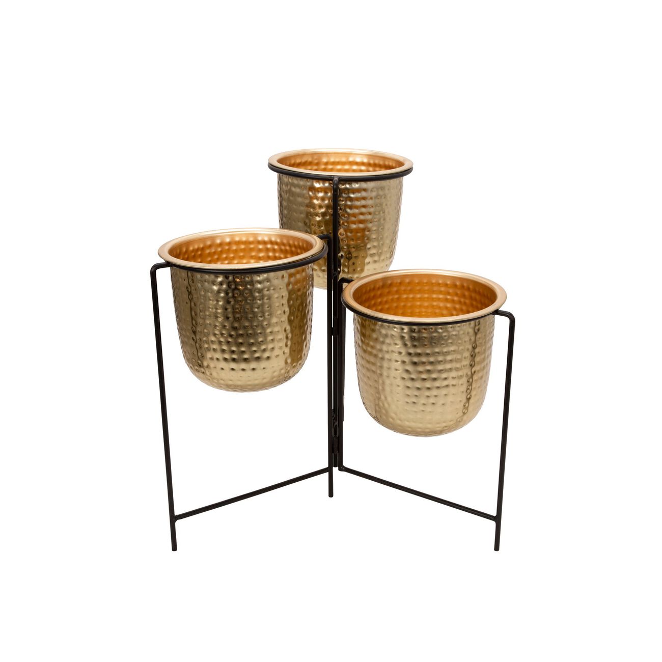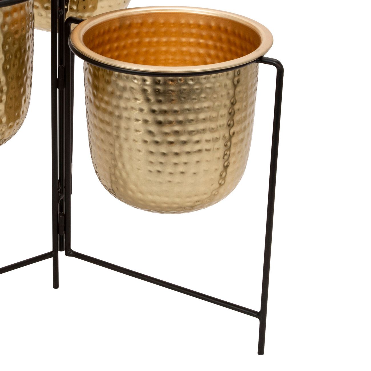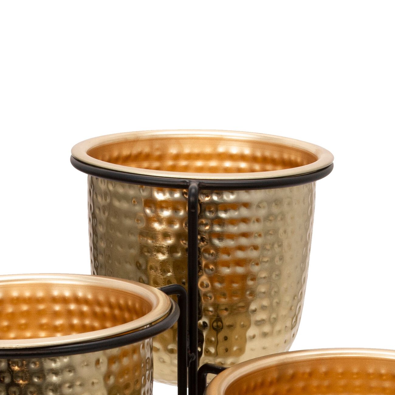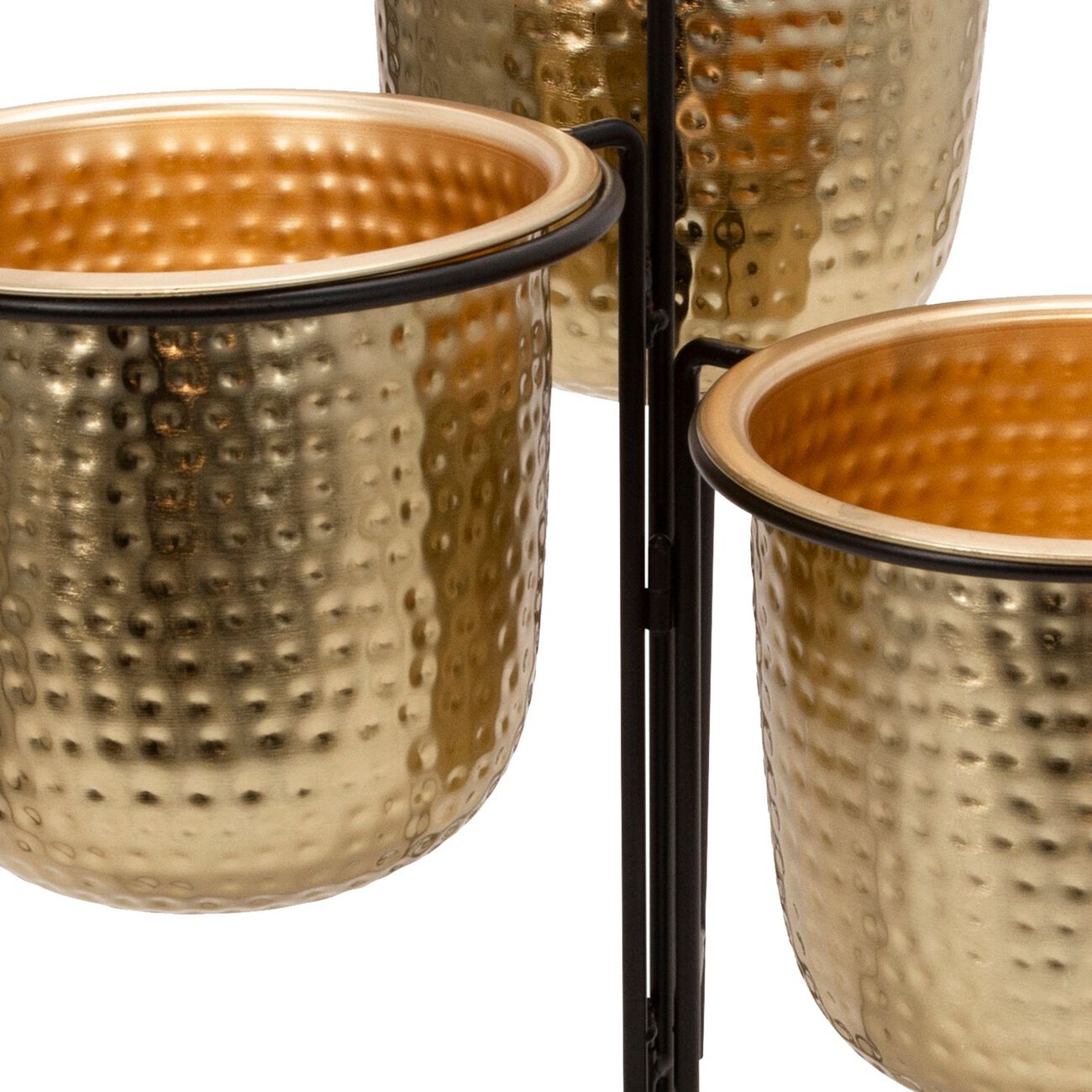 3 Conjoined Hammered Metal Planter with Stands, Gold and Black