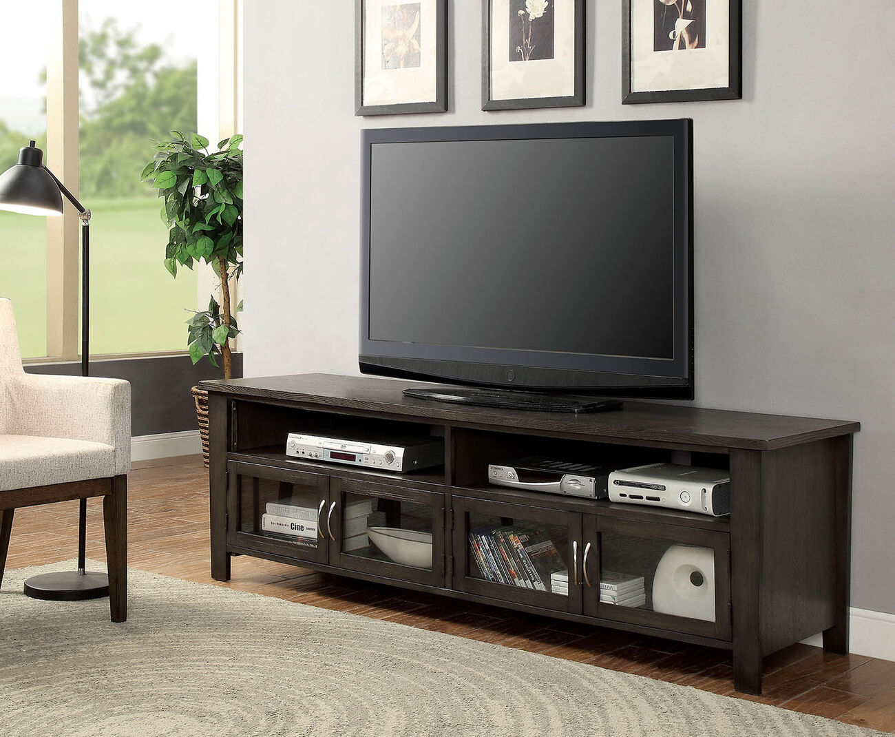 This 72 tv stand comes with 2 open shelves and 2 cabinets which offer lots of storage space to use for your entertainment devices such as setup box, video players, gaming boxes and store your collection of favorite dvds and games as well. This tv stand with simple designing, makes this a smart choice for people who favor subtle elegance. Made of wood and glass in brown finish.